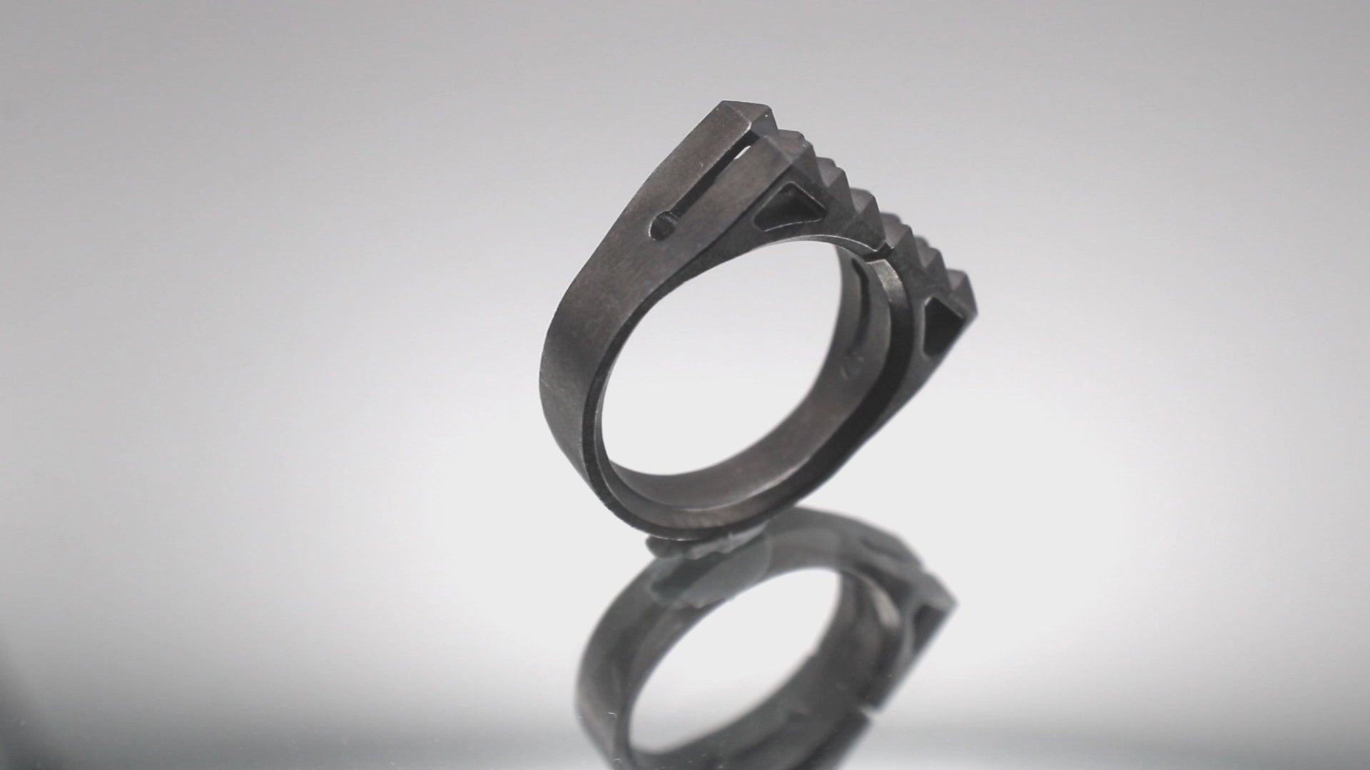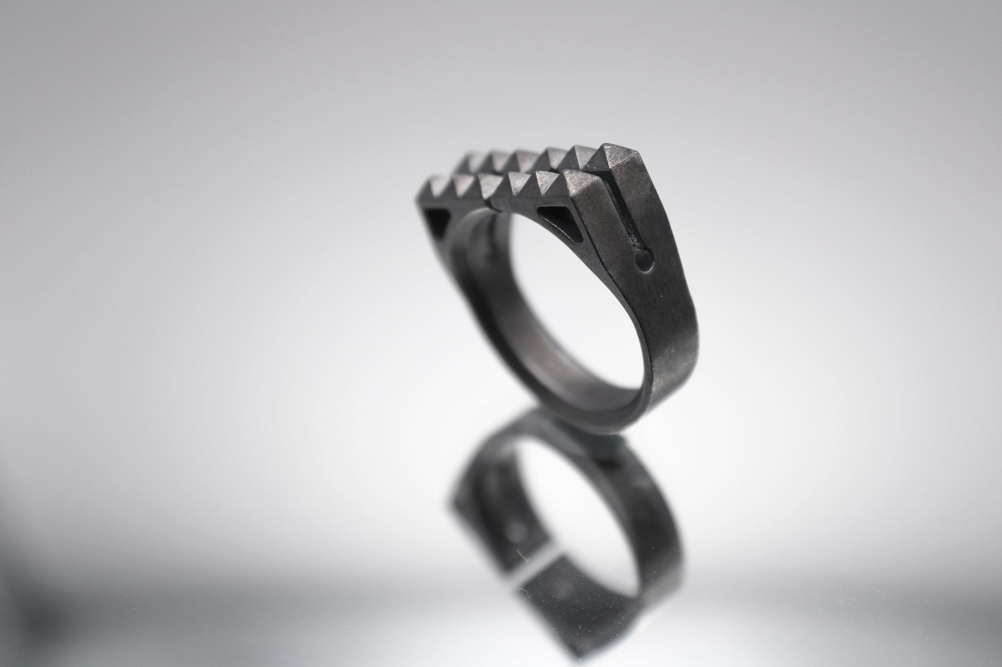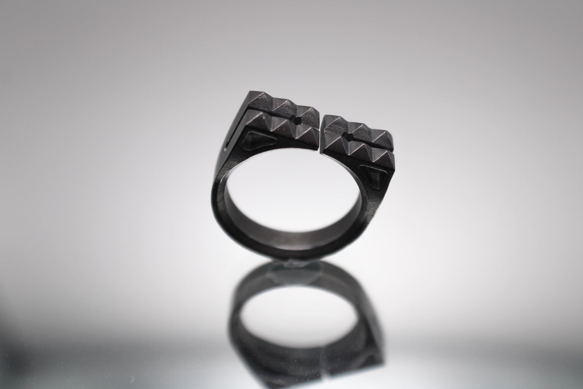 The Breach ring is a sophisticated accessory, specially crafted for men with a bold taste in jewelry. Inspired by the design of door breaching equipment, this ring features studs that are artfully arranged to resemble a tool. The ring's adjustable design and blackened brushed finish give it a sleek, stainless steel appearance, making it suitable for a variety of settings. The Breach ring can be worn on multiple fingers, adding versatility and functionality to your wardrobe. Whether you're looking for an accessory for everyday wear or a special occasion, this ring is a practical and eye-catching choice that is sure to impress.