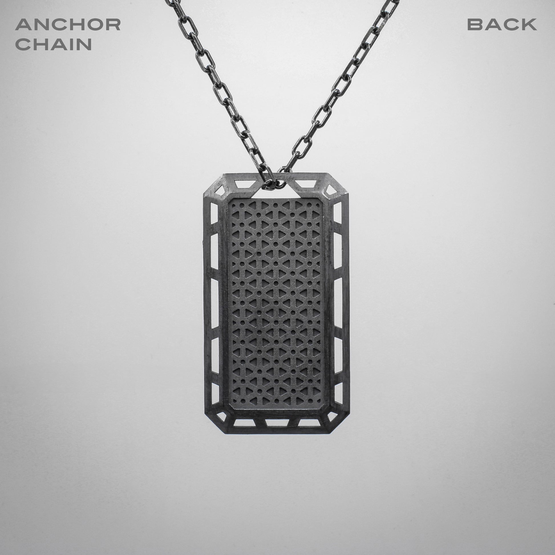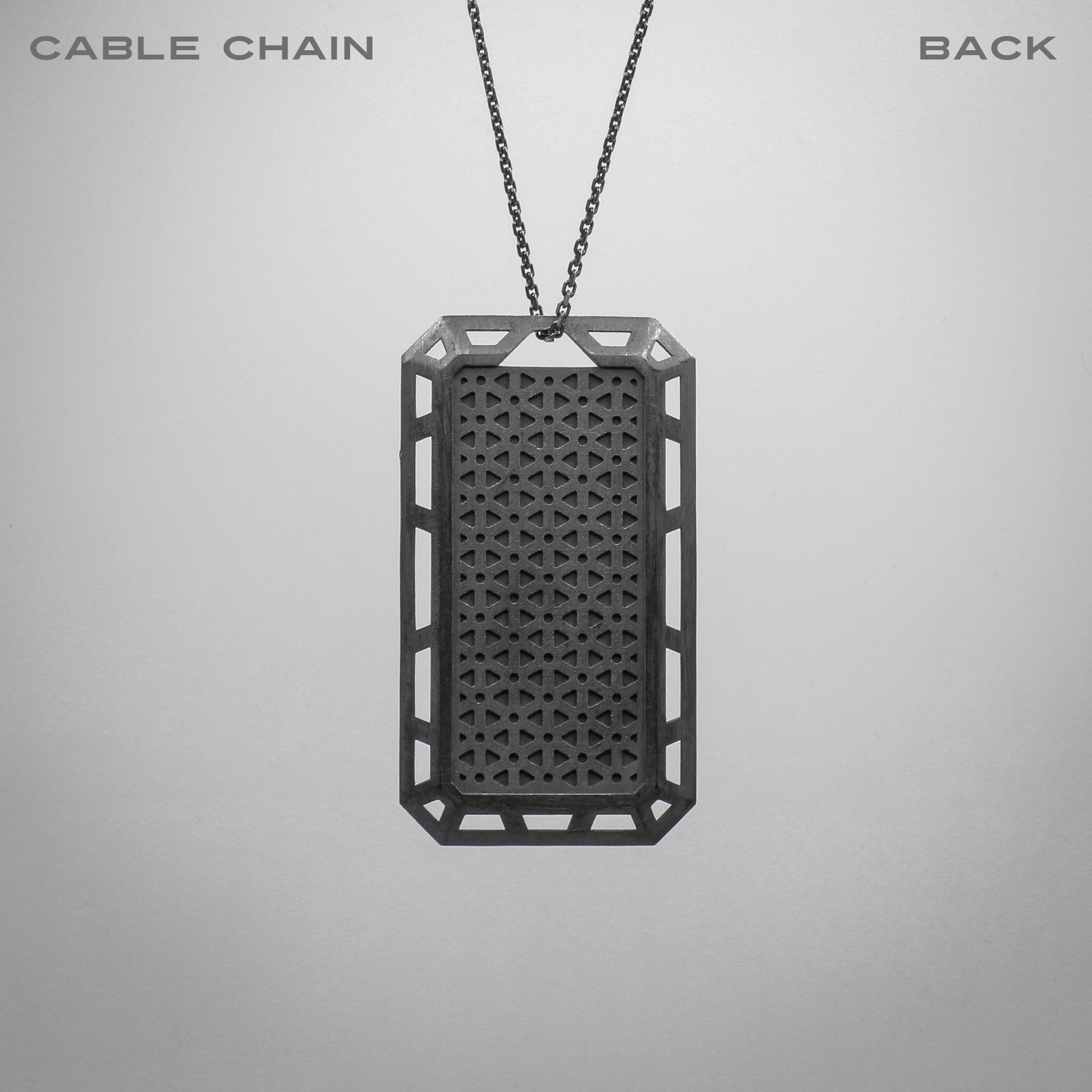 In this rendition, the pendant and chain undergo a blackening process using liver of sulfur or acid, resulting in a captivating and mysterious dark aesthetic. Following the oxidization, both the pendant and chain are meticulously brushed with extra-fine stainless steel wool. This technique imparts a rugged appearance characterized by the interplay of dark surfaces, brushed texture, and burnished high points, creating a compelling contrast that enhances their visual allure.
