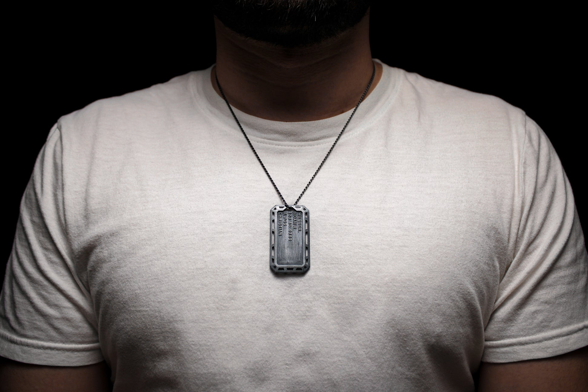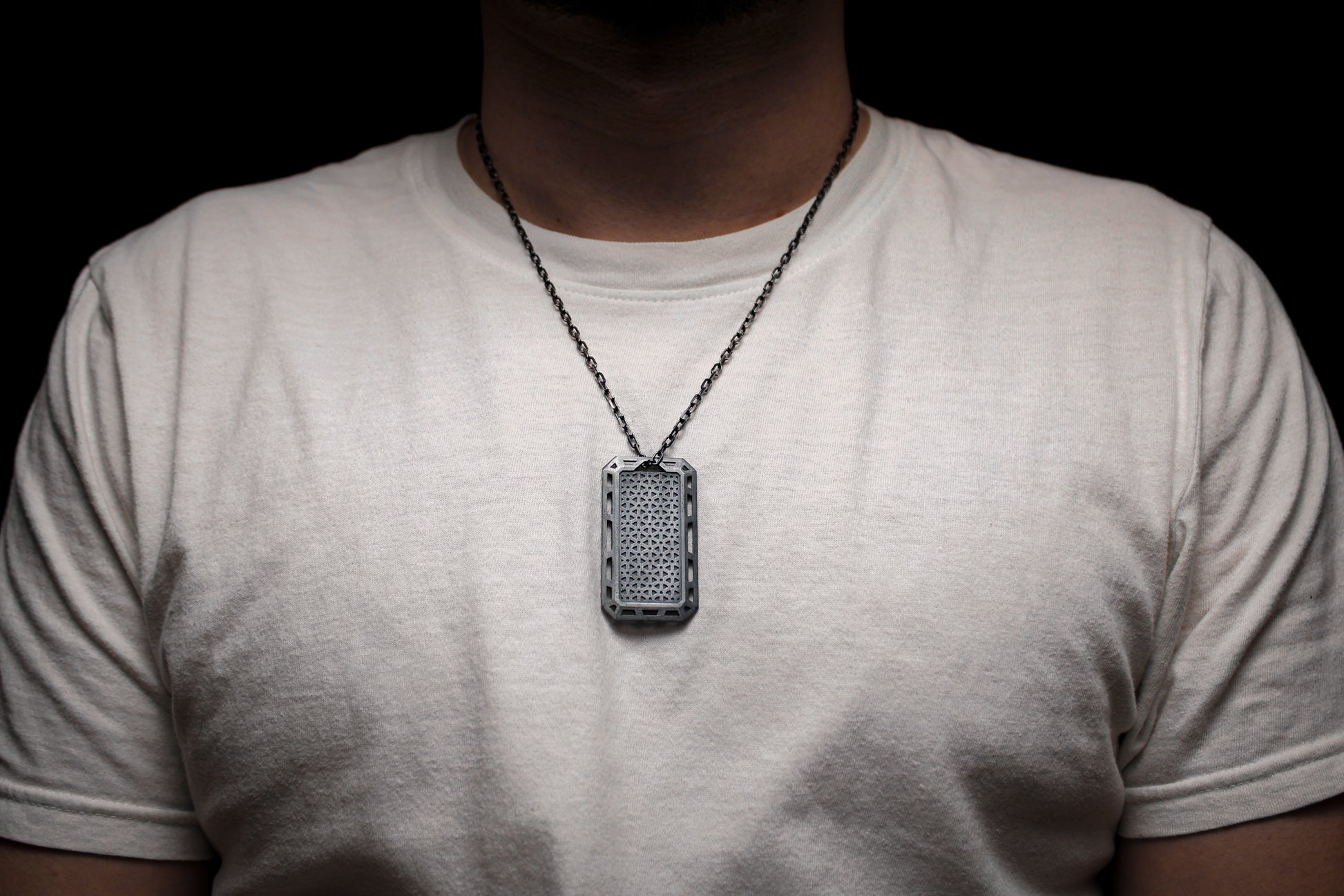 ISOGRID DOG TAG PENDANT [BLACKENED FINISH] - Premium .925 Sterling Silver - HANDMADE IN USA (NY, VA)