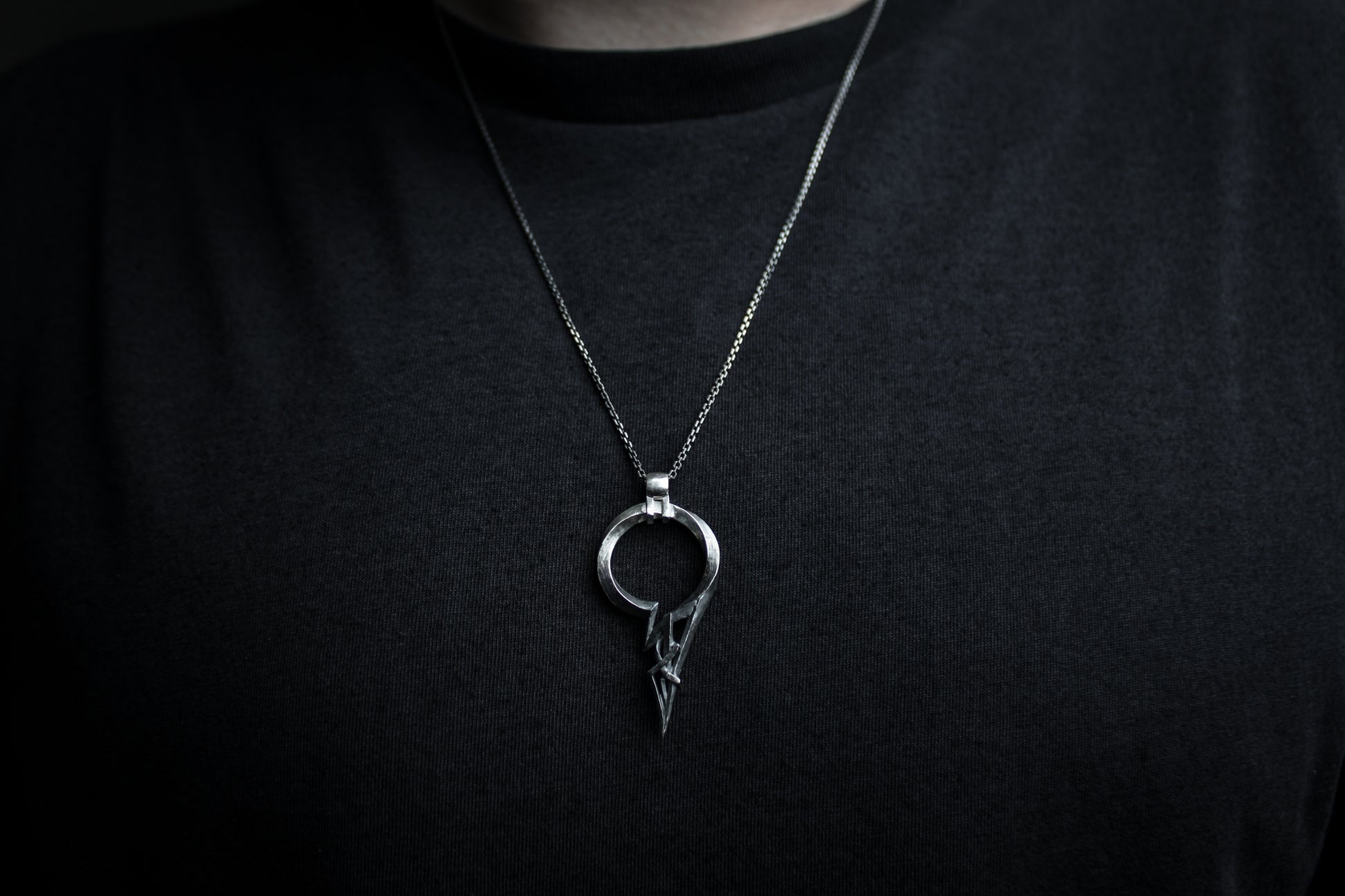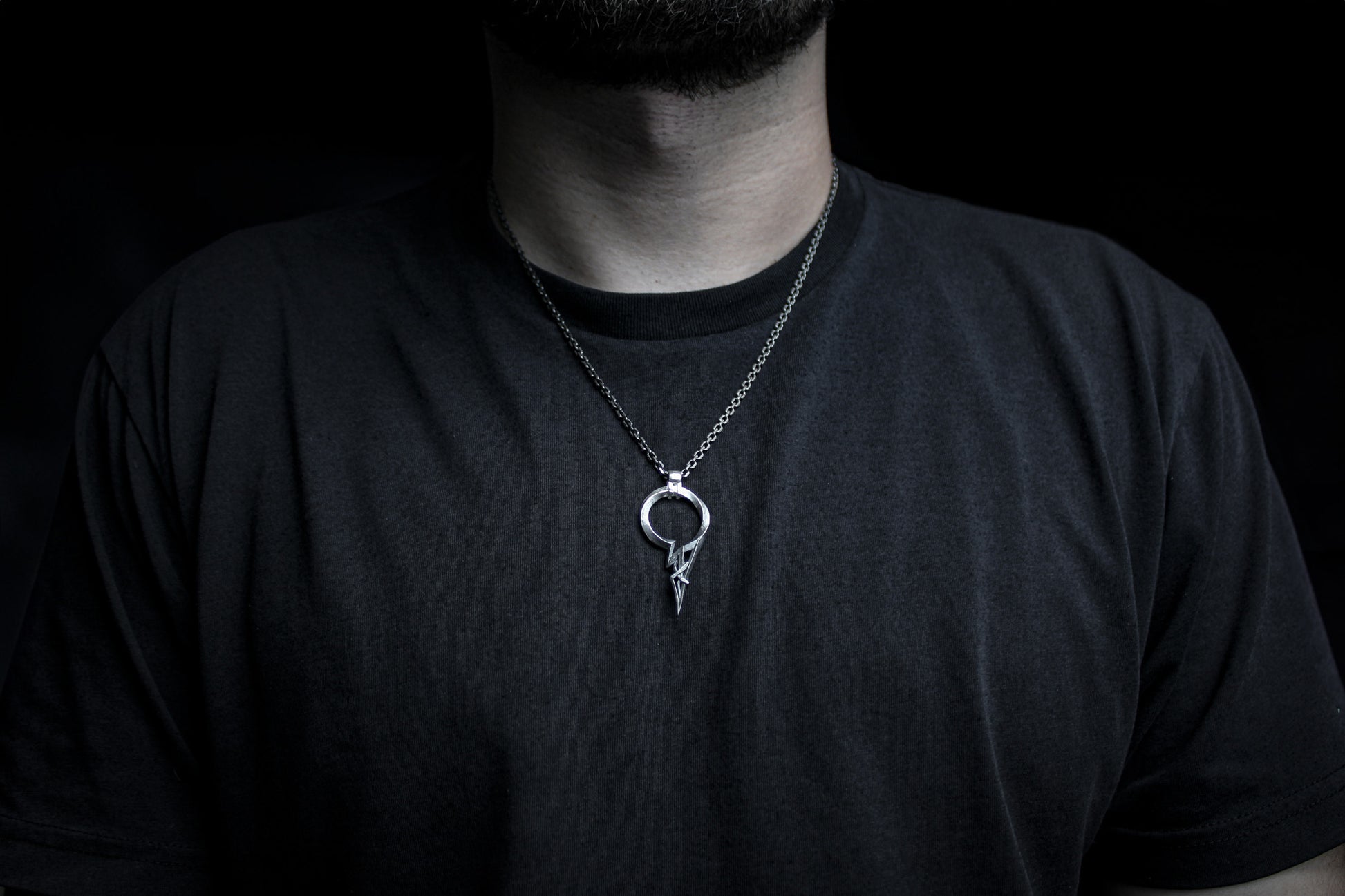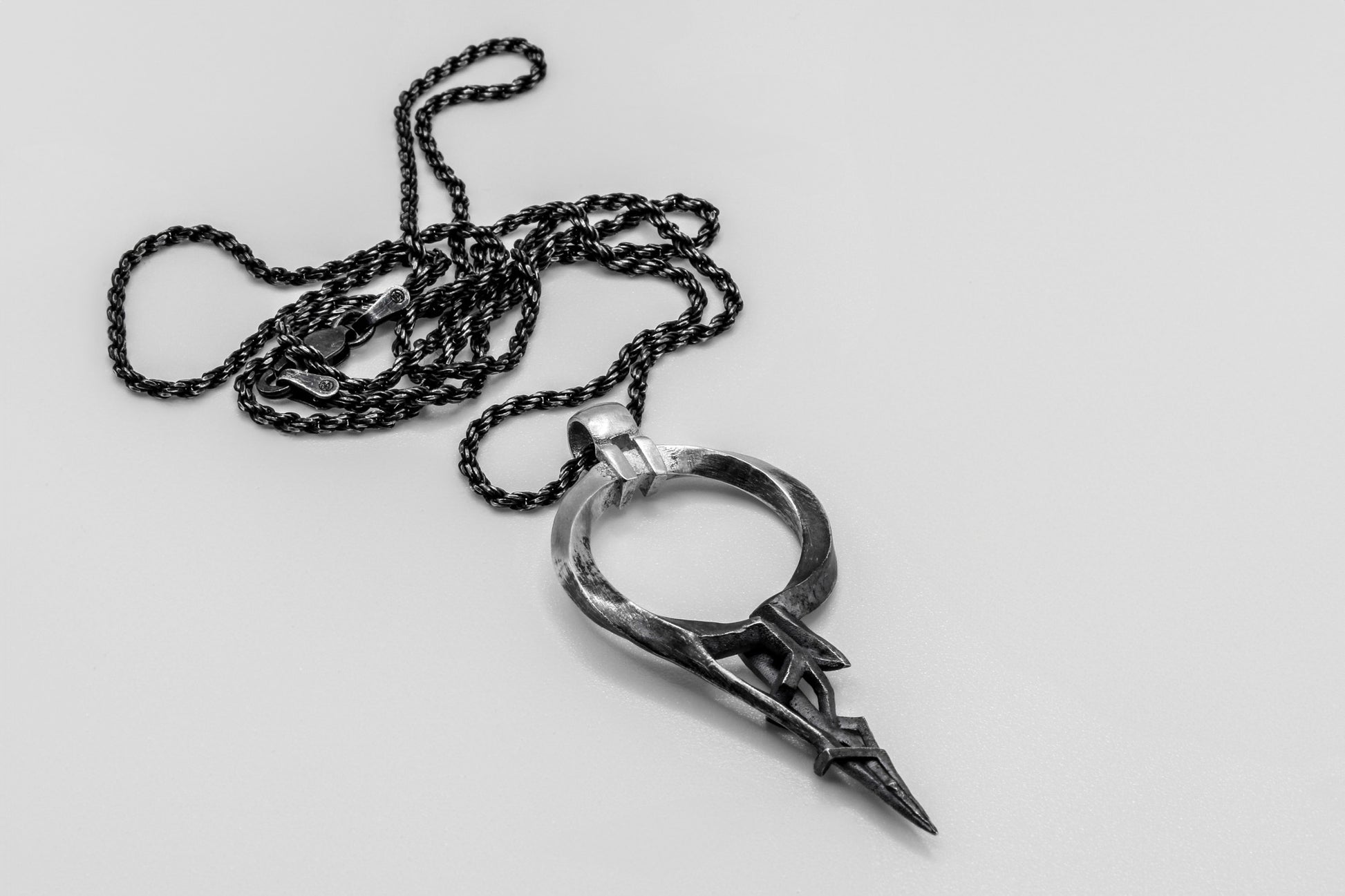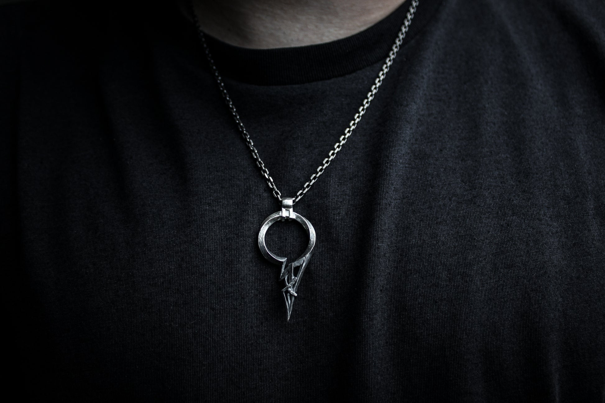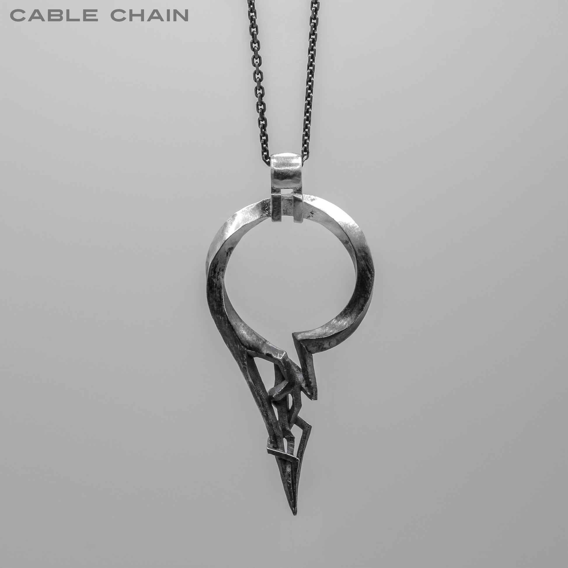The pendant and chain undergo an oxidation process, resulting in a darkened surface. Both components are crafted from 100% authentic sterling silver.